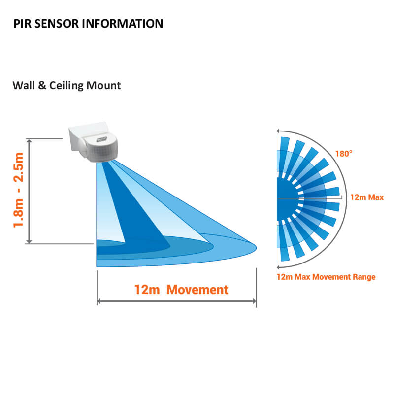 The PIR44 automatically turns on lights or any electrical device within the sensors rated load, when motion and body heat is detected. It has a 180° detection range and adjustable settings, easily integrating into new or existing installations. With an IP65 rating, it can be installed indoors or outdoors. Installation must be done by a qualified electrician.