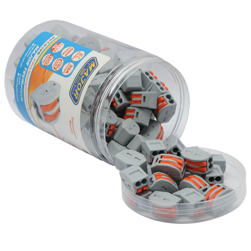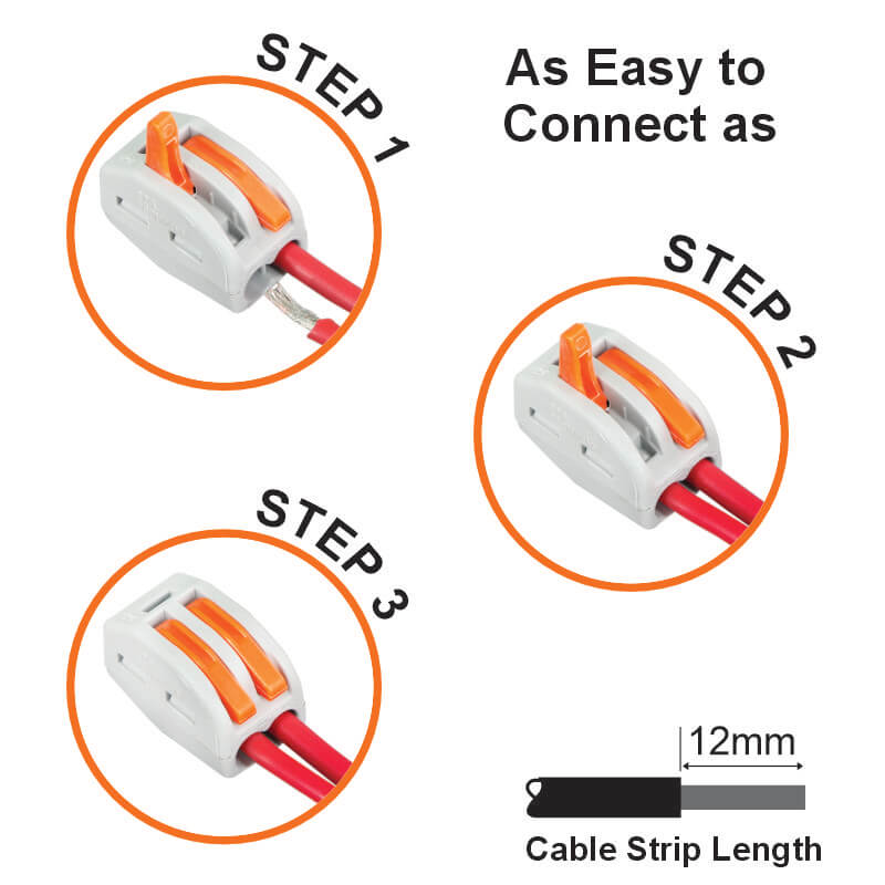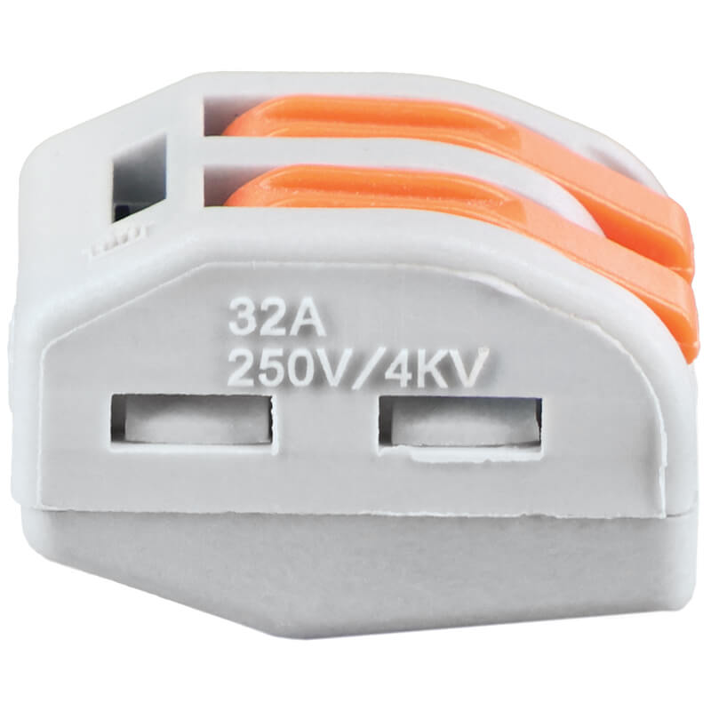 The PCT-212 Splicing Connector Block offers a quick and secure clamping solution, with the added benefit of an easy release when needed. Designed with a screwless connection, it helps reduce installation time for electricians and contractors. This 2 Pole connector is ICE Standard Approved, rated at 450V, supports up to 32A, and provides 4kV voltage resistance.