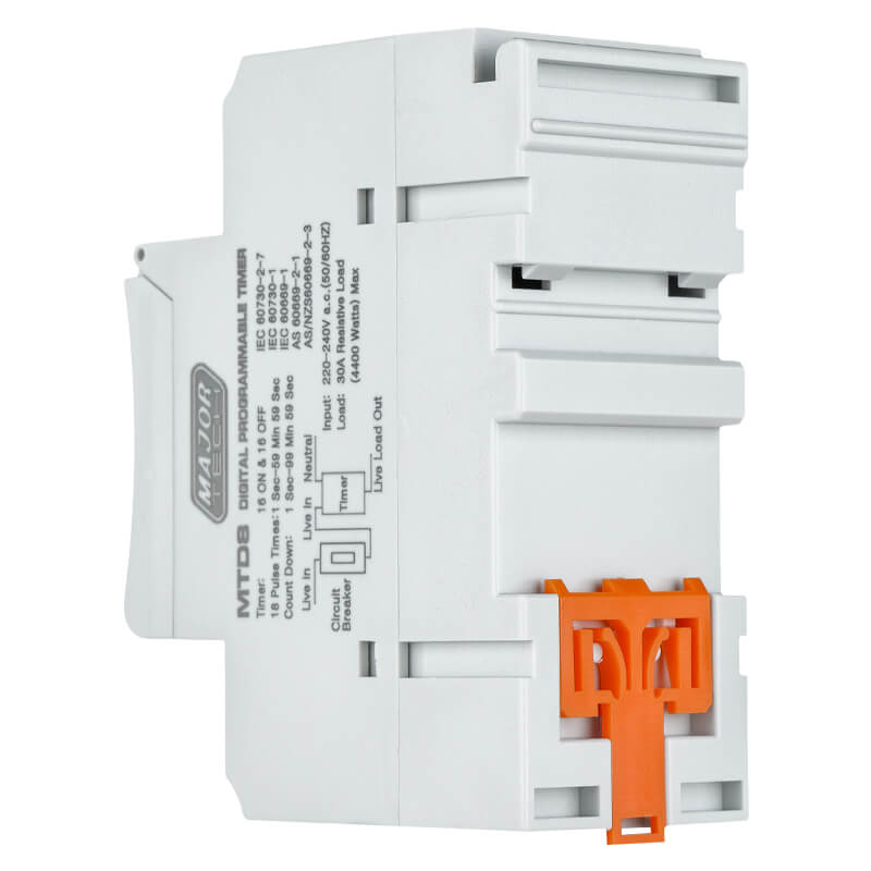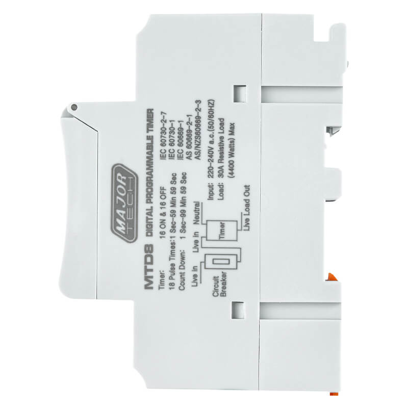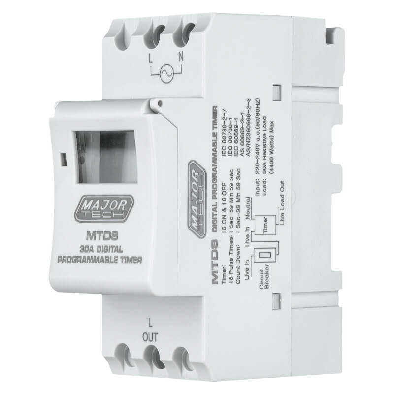 The MTD8 is a 30A 16 On/Off Digital Programmable Timer that is easy-to-use, quick to set and will maximize your savings. When installing the MTD8 for the first time, press the reset button to activate the timer.