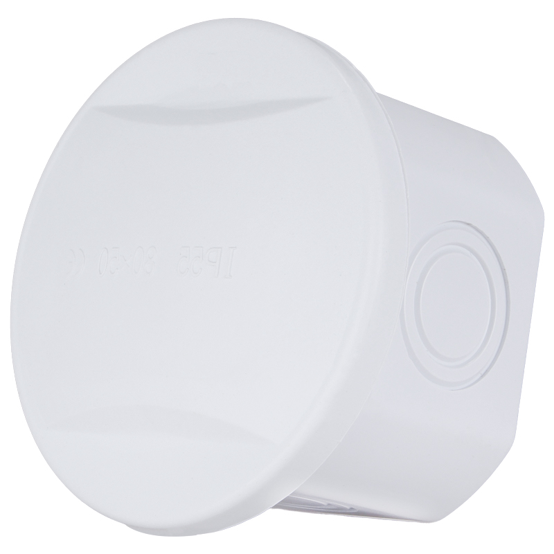 The VJ85G is a high-quality round electrical junction box, measuring Ø80 x 50mm, with an IP55 ingress protection rating, making it suitable for indoor and light outdoor applications. Designed with multiple pre-formed knockouts in various sizes, it offers flexible cable entry options for easier installation. Constructed from non-flammable, high-grade ABS plastic, the VJ85G is both durable and lightweight. It features an IK08 impact resistance rating, ensuring protection against mechanical impacts in demanding environments. The product complies with international standards IEC 60529 and IEC 60670, and holds multiple certifications including CE, RoHS, HF test, IK test, and is manufactured under the ISO 9001 quality management system.