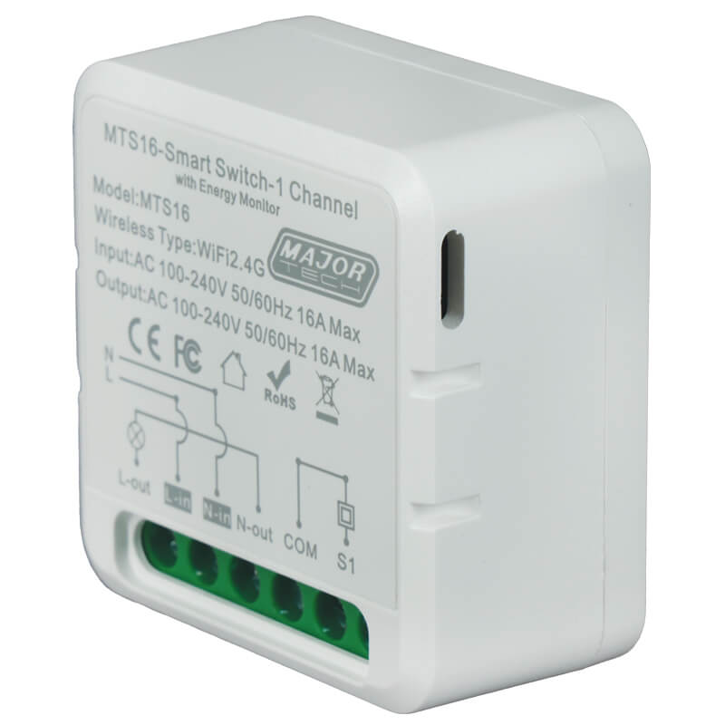 Experience next level Smart Home management with the MTS16 Smart Wi-Fi and Bluetooth Switch Module. This Switch Module is specifically designed for users to be able to add a level of smart control to any standard switch or socket, with Dual Mode Wi-Fi and Bluetooth connectivity, allowing users to utilize the Smart App functionality of “Major Tech Hub” for remote monitoring and control. It adheres to 802.11b: DSSS; 802.11g/n: OFDM for Wi-Fi standards for seamless data communication, with GFSK for Bluetooth V5.1 as a failover should the Wi-Fi connection be interrupted. When installing the Smart Switch Module, ensure that it is done by a suitably qualified professional in accordance with South African regulations and making sure it is placed in an appropriate environment with an ambient temperature range of -25°C to 55°C. The relative humidity should be kept below 75%.
