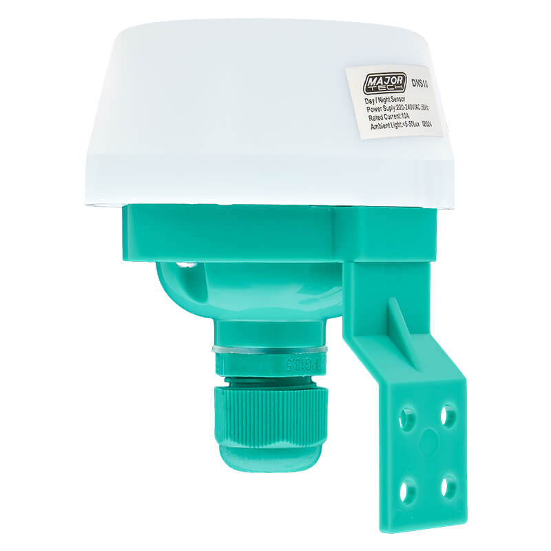 The DNS10 Day/Night sensor automatically turns lighting on or off at dusk and dawn based on the ambient light levels detected by the sensor. It features adjustable lux settings and integrates easily into new or existing installations. Designed specifically for outdoor use, the DNS10 must be installed in an uncovered location to function accurately. Its IP54-rated housing provides protection against limited dust ingress and water splashes from any direction, making it suitable for direct exposure to rain (though not submersion), while the IP68-rated cable gland offers superior protection against dust and prolonged water immersion at the wiring point. Ideal for outdoor lighting, industrial, commercial, residential, and security applications, it enhances energy efficiency and safety by activating lights only when needed. Simple yet effective, the 10A rated current of the DNS10 adds to its convenience and sustainability. Installation must be done by a qualified electrician.