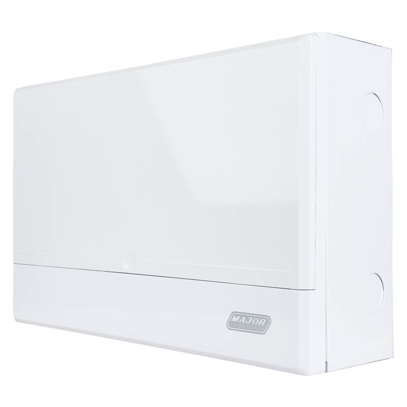 The VBM1114SMA is an IP20-rated 12 Pole Surface Mount distribution board, with a compact 1-row height, it can accommodate up to 14 individual 18mm modules, providing an efficient and reliable electrical distribution solution for your space. Crafted from high-quality, powder-coated iron, the durable metal tray ensures strength and longevity.