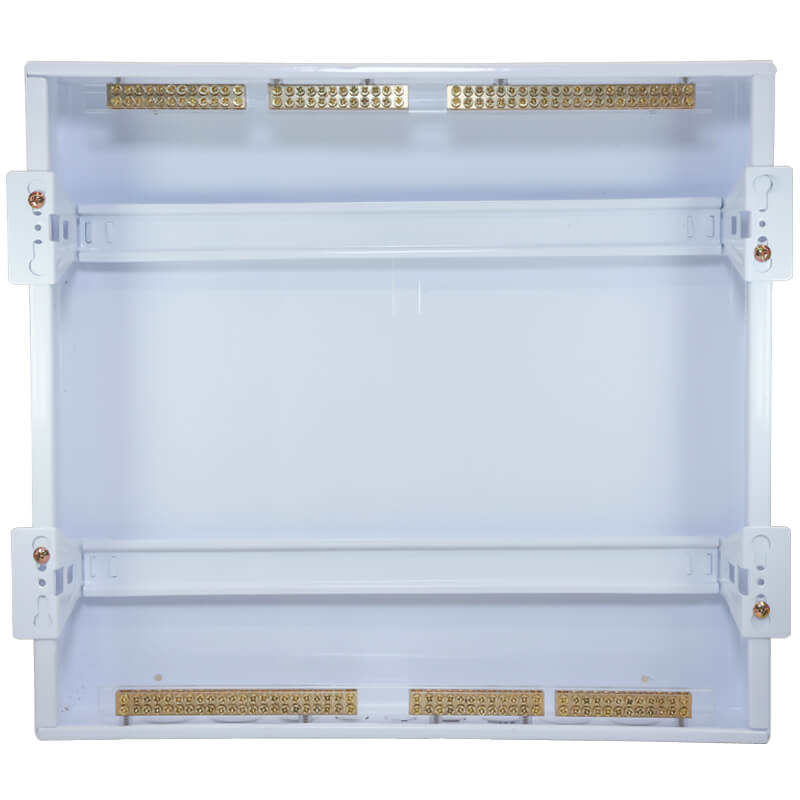 The VBM3036FLA is an IP20-rated 36 pole Flush-Mount distribution board, with a compact 2-row height, it can accommodate up to 36 individual 18mm modules, providing an efficient and reliable electrical distribution solution for your space. Crafted from high-quality, powder-coated iron, the durable metal tray ensures strength and longevity. Conforming to Australian compliance standards AS/NZS 61439, AS/NZS 61000, the VBM3036FLA switchboard is equipped with an Earth & Neutral Bar, offering enhanced safety and reliability in electrical installations. The adjustable DIN rail and front cover simplify the installation process, ensuring a level and secure setup. Additionally, included distribution board labels make circuit identification easy, helping to maintain a tidy and organised electrical system. This VBM3036FLA distribution board is the ideal choice for those seeking a robust, efficient, and organised electrical solution.