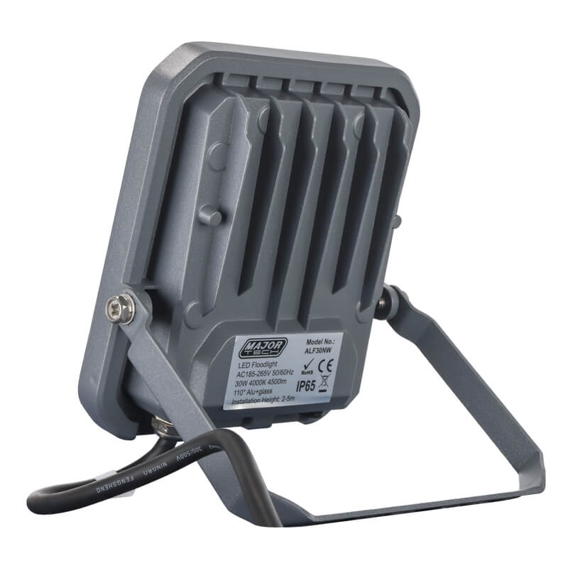 This 30W IP65 LED based floodlight is capable of producing 4500Lm and is designed as a replacement for traditional floodlights. The glass cover is 4mm strengthened clear glass which is fully weatherproof and resistant to all environmental factors. The lighting source is made up of high power SMD LED’s, which in turn are directly connected to the aluminium shell ensuring very low heat emissions and a much longer lifespan. Additional features include surge protection, a wide voltage range and an IK07 impact protection. All electrical equipment is required to be installed by a qualified electrical professional.