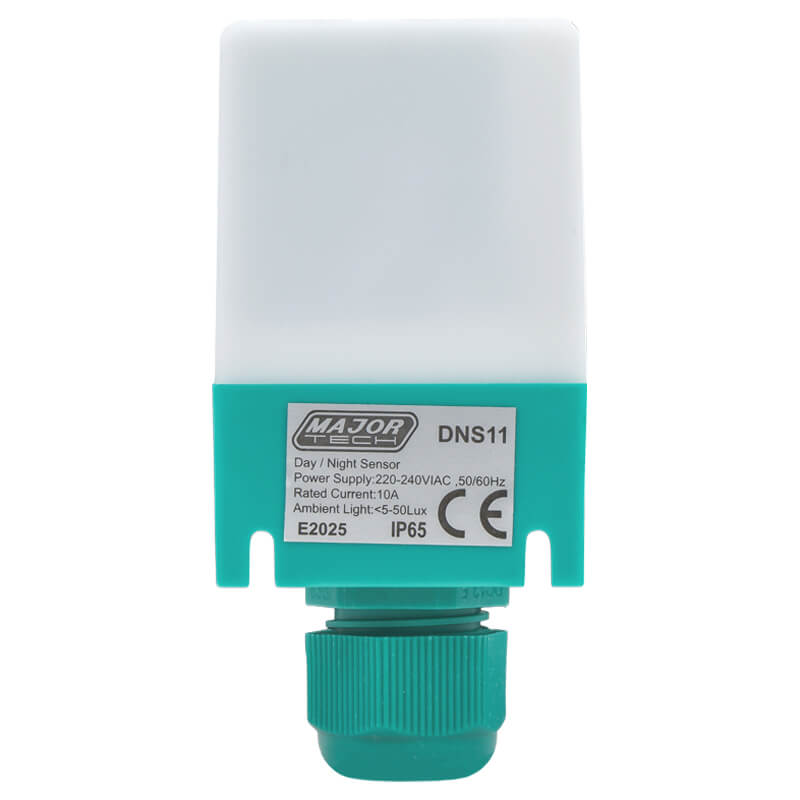The DNS11 Day-Night sensor automatically turns on or off lighting at dusk and dawn based on set ambient light levels of the sensor. It features adjustable lux settings and integrates easily into new or existing installations. Ideal for outdoor lighting, industrial, commercial, housing applications and security lighting, it enhances energy efficiency and security by activating lights on and off only when needed at night. Simple yet effective, the 10A rated current of the DNS11 enhances convenience and sustainability. Installation must be done by a qualified electrician.